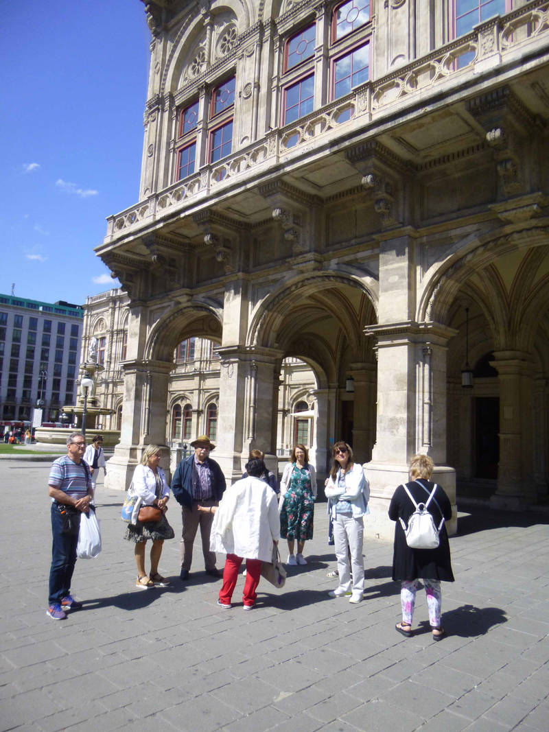 A látogatás június 13-án valósult meg, amikor kilencen, olvasóköri tagok, családtagok, csatlakozók utaztunk ki Bécsbe. A pályaudvaron találkoztunk idegenvezetőnkkel, majd egy igen kiadós, mintegy 3,5 órás sétát tettünk vele, a belváros számos fontos látnivalóját, nevezetességét felkeresve. A sétát a Karlsplatzon kezdtük, majd érintettük az Operát, az Albertinát, az Augustiner Strasse-t, a Josef Platz-ot, az azt körülvevő palotákkal és az Augustiner Kirche-vel. Jártunk a Hofburgban, Schweizerhof, Schweizertor, Ferenc császár emlékmű, Károly főherceg és Savoyai Jenő lovas szobrai, a Helden Platz-on. Majd a múzeumi negyedet érintettük a Természettudományi és a Szépművészeti Múzeummal és a köztük lévő Mária Terézia emlékművel. Jártunk a Volksgarten-ben, rózsakert és Erzsébet királyné emlékműve. Jártunk a Kinsky palotában és a Ferstel passzázsban, benéztünk a Bank Gasse palotáira, és Széchenyi emléktáblájánál búcsúztunk el Zsuzsannától.,