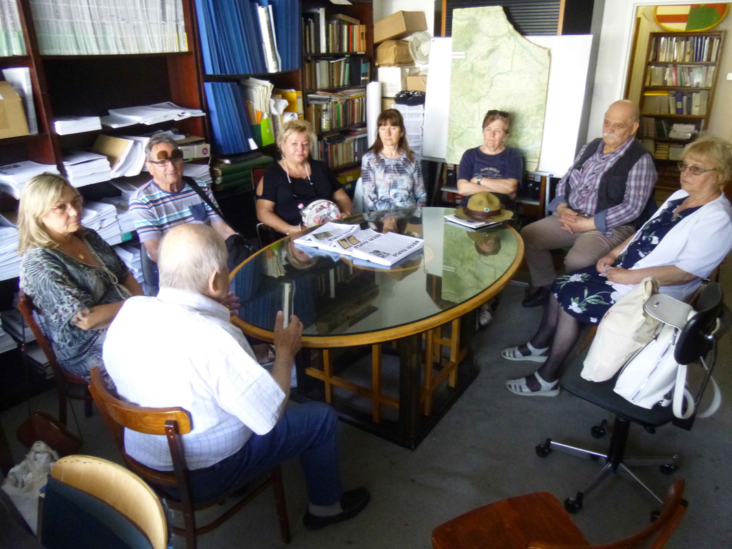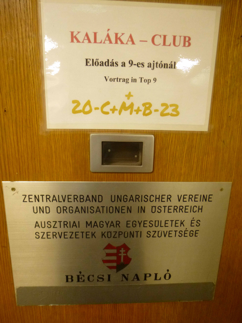 Utána meglátogattuk a Bécsi Napló szerkesztőségét, ahol Deák Ernő várt, ez már a Duna csatornánál, a Schweden Platz-nál van. A Magyar Naplón kívül, az Ausztriai Magyar Egyesületek Szövetsége, a Magyar Iskola és Óvoda is itt működik az épületben. Deák Ernő 56-ban, igen fiatalon emigrált Ausztriába, tanulmányait követően történész kutatóként dolgozott, elsősorban akadémiai intézményekben. Ugyanakkor a 80-as évek eleje óta szerkesztette a Bécsi Naplót, ami máig működik, mostanában kéthavonta jelenik meg. Az utóbbi évek lap példányait, és számos általuk támogatott könyvet adott át a csoportnak, ill. bemutatta korábbi könyveiből a Kárpát medence magyar településeinek német nyelvű monográfiáját, ami három kötetben jelent meg a 80-as években. Legutóbbi könyve a könyvhétre jelent meg, esszék, tanulmányok, versek, Magyarként Ausztriában, címmel.