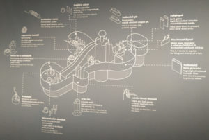 A kiállításba csoportosan léptünk be ugyan, de mindenki gyakorlatilag egyénileg nézhette meg azokat a tárgyakat, bemutatókat, amit tematikusan rendeztek, és olyan magyarázó szöveggel láttak el, amit vagy a fali feliratokkal, videókkal vagy különböző fiókok kihúzással, ajtók nyitogatással váltak olvashatóvá, hallgathatóvá.
