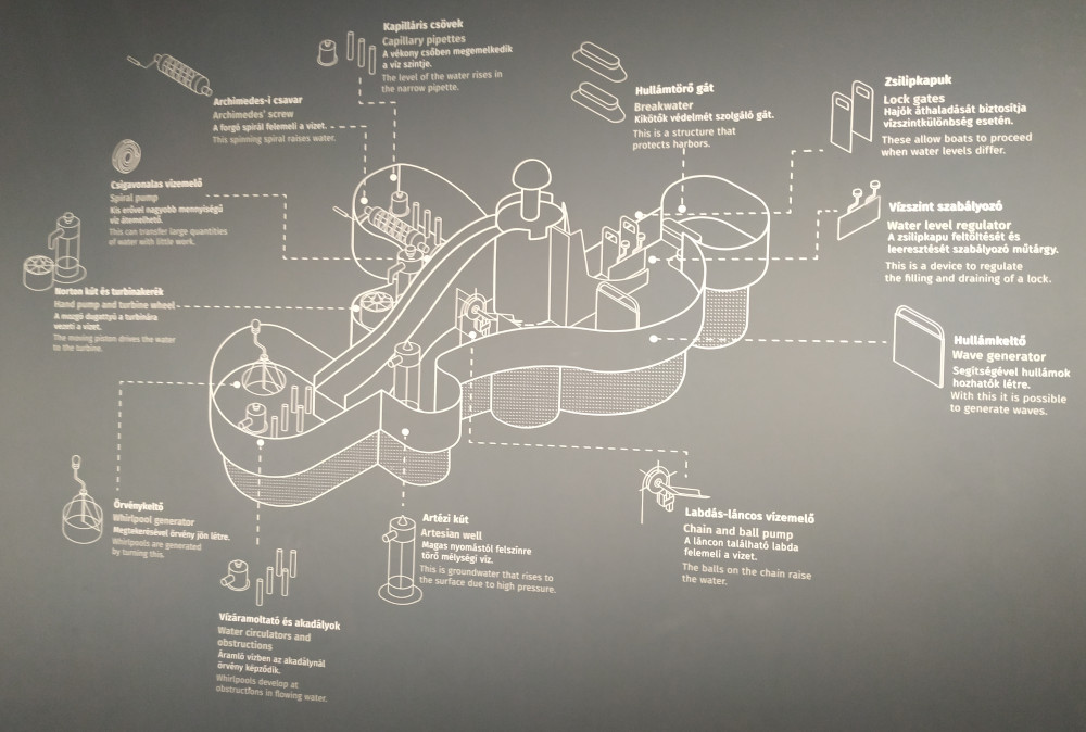 Egy külön pancsolónak elnevezett teremben a gyakorlatban is ki lehet próbálni a különböző vízkiemelési módszereket és egy kis fahajót lehet egy zsiliprendszeren keresztül küldeni és hogyan lehet nagyobb hullámok ellen védekezni.