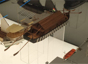 A rendkívül gazdag gyűjteményben olyan vízi járműveket is találtunk, amikkel az egyesületünkben már többször is foglalkoztunk és ezért különösen is érdekesek voltak, így az Ulmi Schachtelt és a hajómalmot.